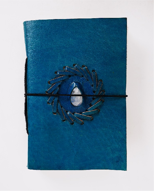 This diary features a beautiful combination of green and grey semi-precious stones embedded in genuine leather, giving it a vintage and luxurious look.